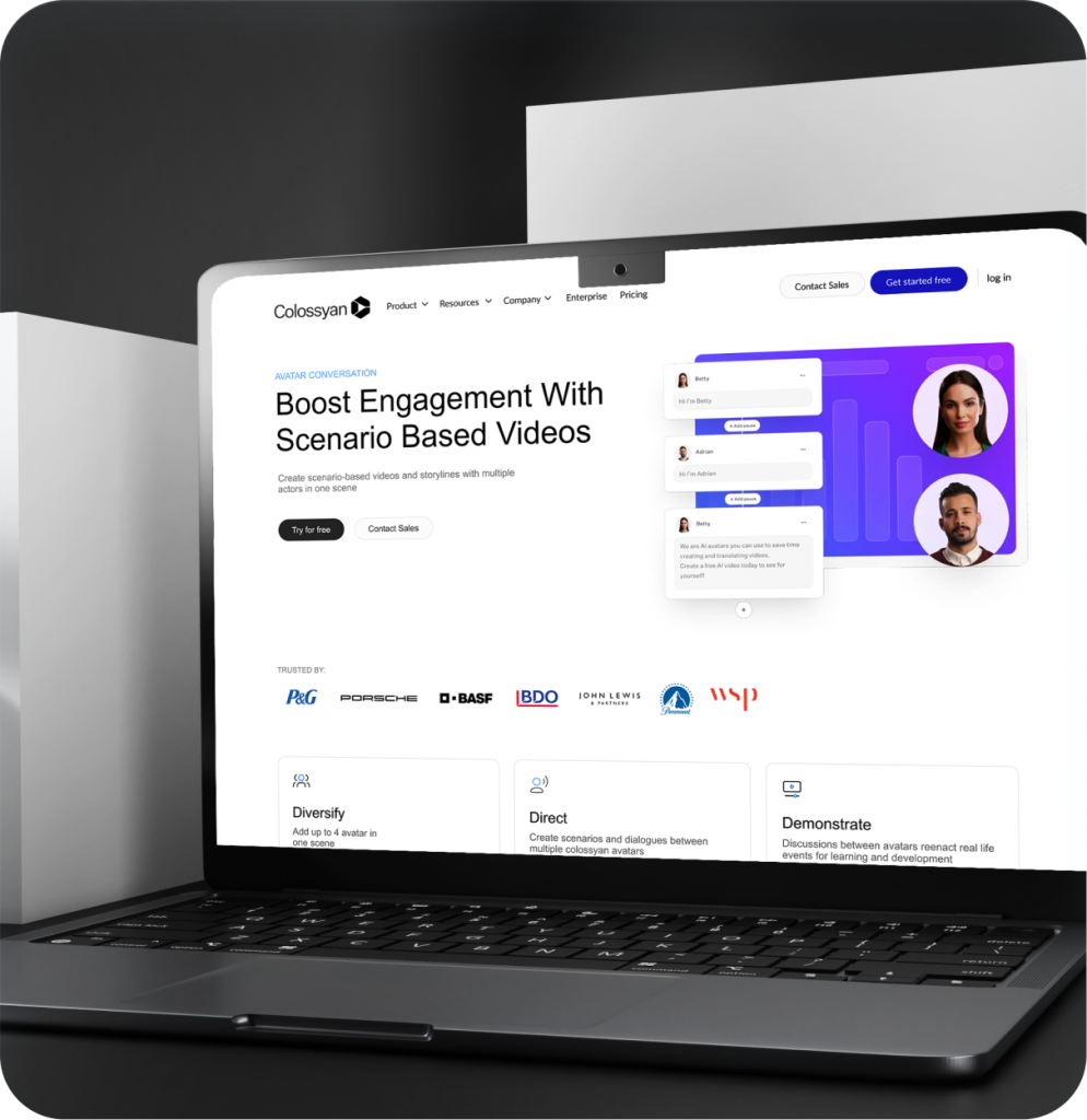 The challenge was to create a modern visual identity and a comprehensive UX/UI design for an AI-powered video creation platform that transforms written text into professional learning and marketing videos.